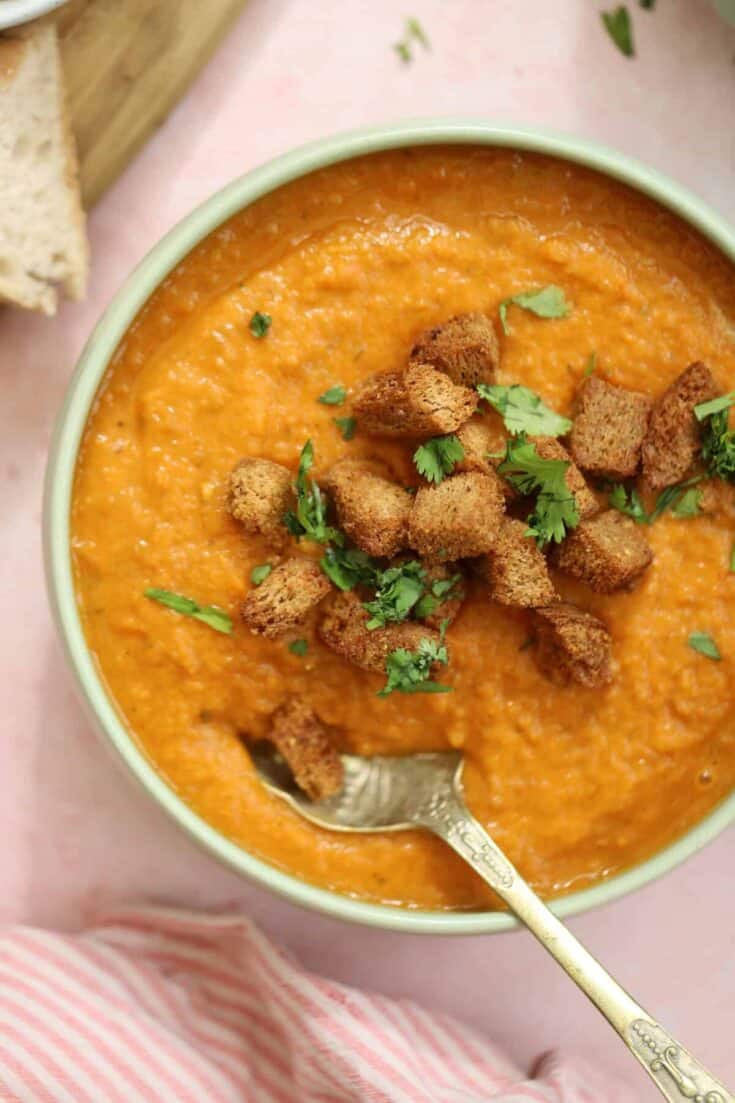 A gluten free and vegan carrot and lentil soup recipe, which is perfect for batch cooking or for an easy gluten free lunch.