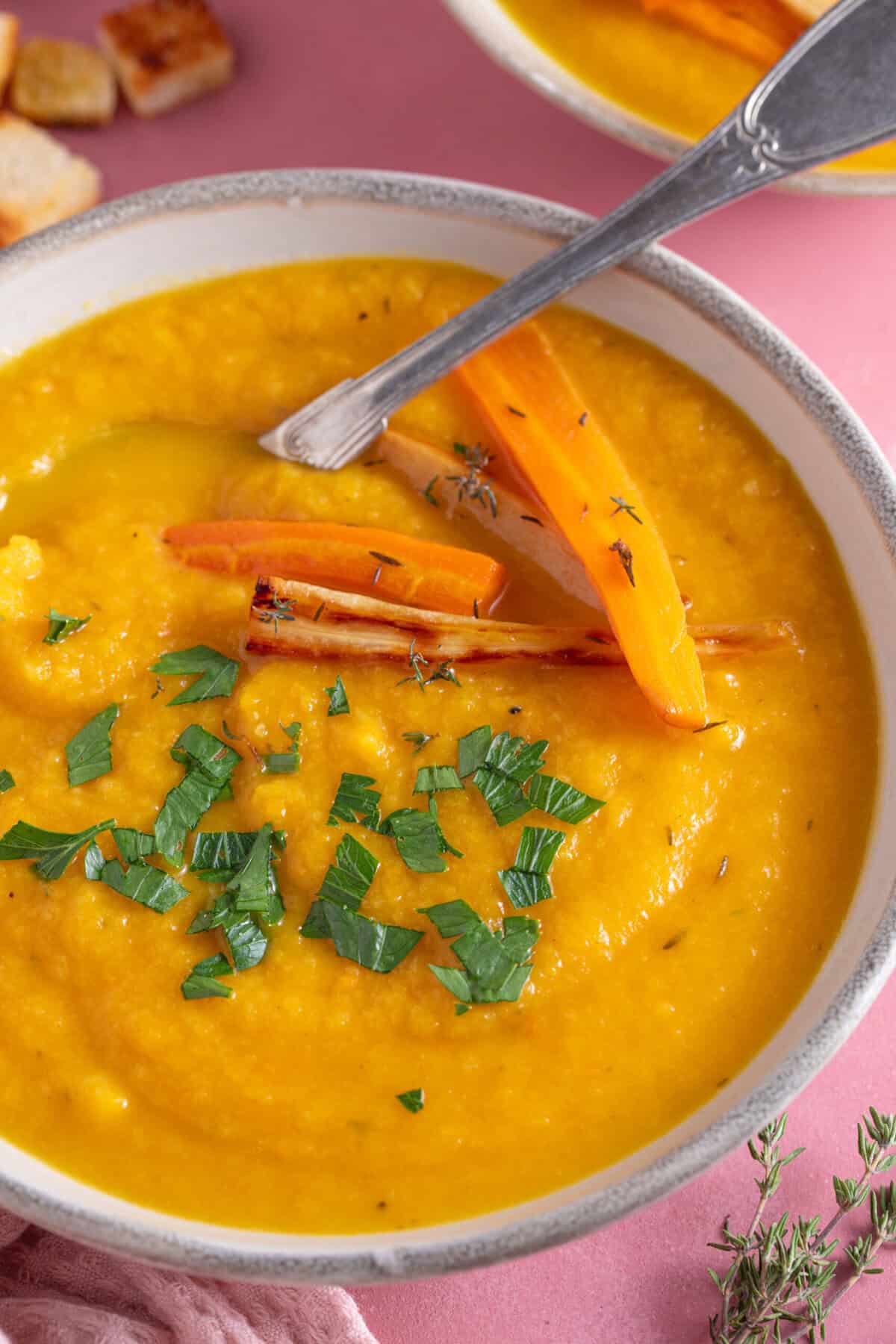 - Serving Suggestions: I love serving up this parsnip and carrot soup with some easy gluten free croutons for a delicious crunch!